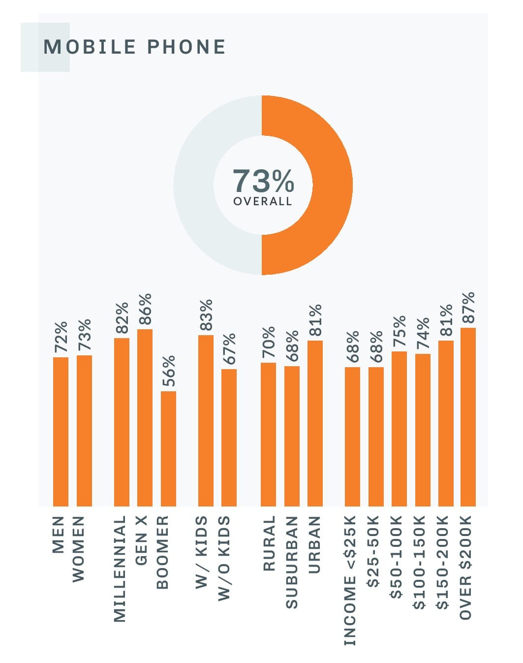 A. Most consumers use mobile phones as their primary device for online purchases. 83% have at least one shopping-related app installed, with Millennials leading at 93%.