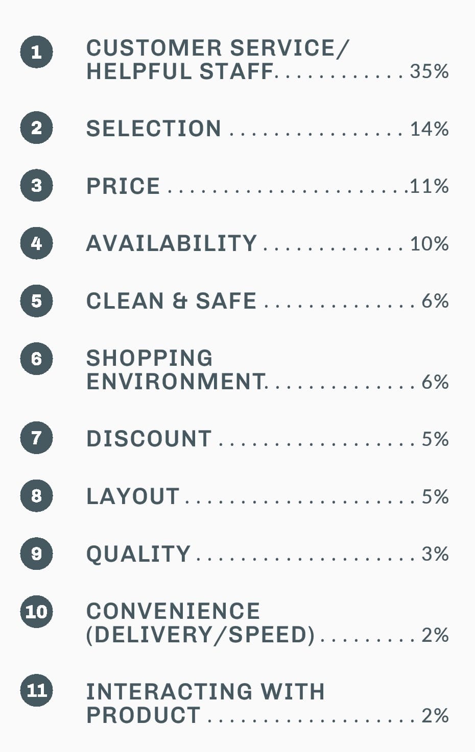 - In-store delight is driven primarily by helpful customer service and selection, while online delight is driven by easy navigation and product selection.