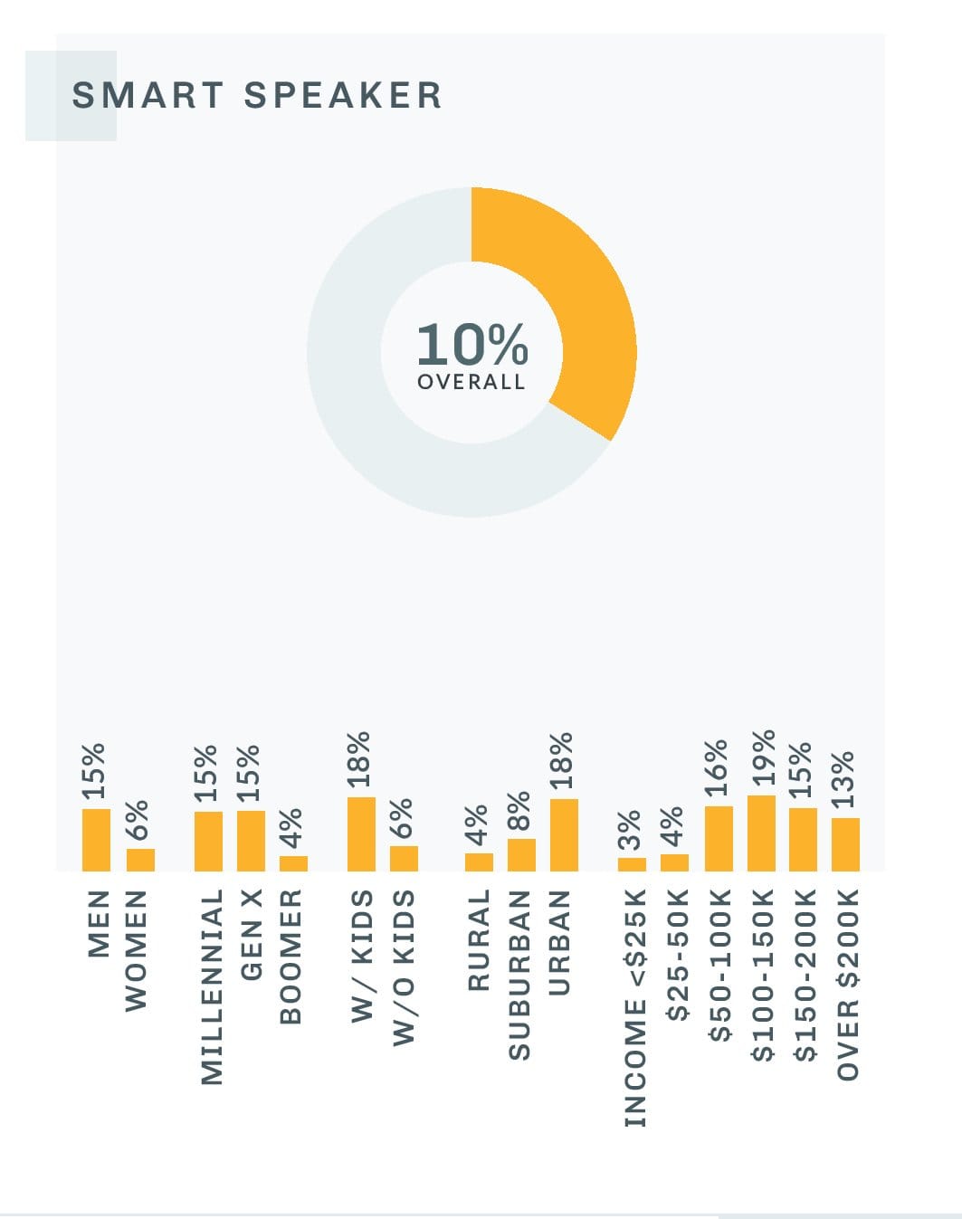 One relatively new trend to keep an eye on is the rise of the smart speaker. While it currently lags far behind the other options as of this survey, it will be interesting to see what the next few years show regarding smart speakers as an industry disruption.