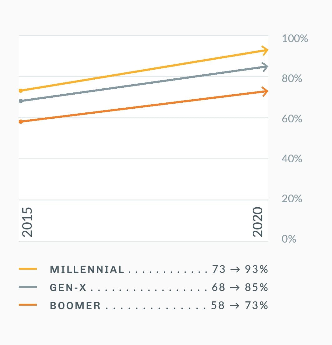 Millennials alone more than doubled their use of this option, going from 34% to 85%.
