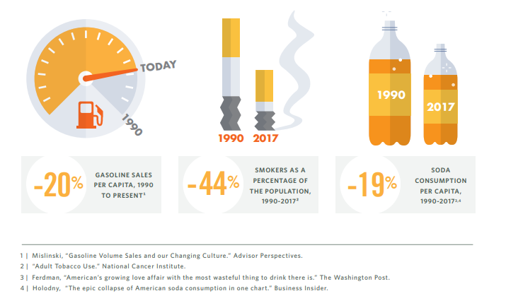 - Dwindling revenue from ‘Cokes, Smokes, and Gas’