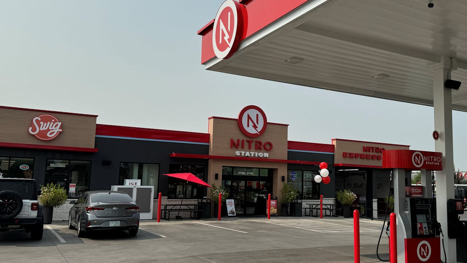 The remodeled site transforms a former car repair station into a dynamic multi-tenant property, featuring an expanded c-store, a Swig beverage shop, and an oil change service. Nitro Station attracts steady traffic with offerings like slushies, hand-dipped ice cream, and quick-serve favorites from its in-house kitchen. A special performance fuel pump caters to off-road enthusiasts heading to nearby sand dunes, reinforcing the brand’s adventurous energy.